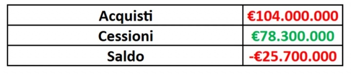 在离队球员中,除了特拉恰诺和邦多租借至克雷莫内塞、泽罗利租借至蒙扎以及卡马尔达租借至莱切之外,还考虑了瓦斯奎兹的合同终止、弗洛伦齐和约维奇的合同到期。此外,所有上赛季租借的结束也被计入,这些租借总计花费了2500万欧元。